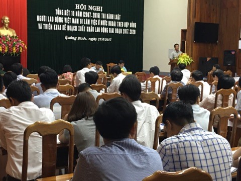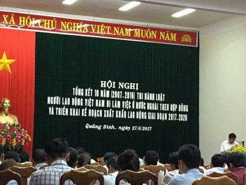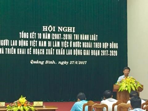 Ngày 27/6/2017, Ủy ban nhân dân tỉnh Quảng Bình tổ chức Hội nghị Tổng kết 10 năm (2007-2016) thi hành Luật Người lao động Việt Nam đi làm việc ở nước ngoài theo hợp đồng và triển khai Kế hoạch đưa lao động đi làm việc có thời hạn ở nước ngoài theo hợp đồng trên địa bàn tỉnh giai đoạn 2017-2020, do đồng chí Nguyễn Hữu Hoài – Chủ tịch Ủy ban nhân dân tỉnh chủ trì.