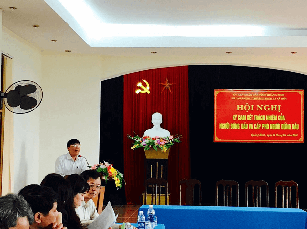 Ngày 01 tháng 04 năm 2016, Sở Lao động - Thương binh và Xã hội đã tổ chức Hội nghị quán triệt và Ký cam kết về thực hiện trách nhiệm và xử lý trách nhiệm đối với người đứng đầu và cấp phó của người đứng đầu các tổ chức chuyên môn, đơn vị trực thuộc Sở trong thực hiện chức trách, nhiệm vụ được giao.Tham dự Hội nghị có đồng chí Nguyễn Trường Sơn - Tỉnh ủy viên, Bí thư Đảng ủy, Giám đốc Sở; đồng chí Phạm Thành Đồng - Phó Bí thư Đảng ủy, Phó Giám đốc Sở, Chủ tịch Công đoàn Sở; các đồng chí Trưởng, Phó các tổ chức chuyên môn, đơn vị trực thuộc Sở.