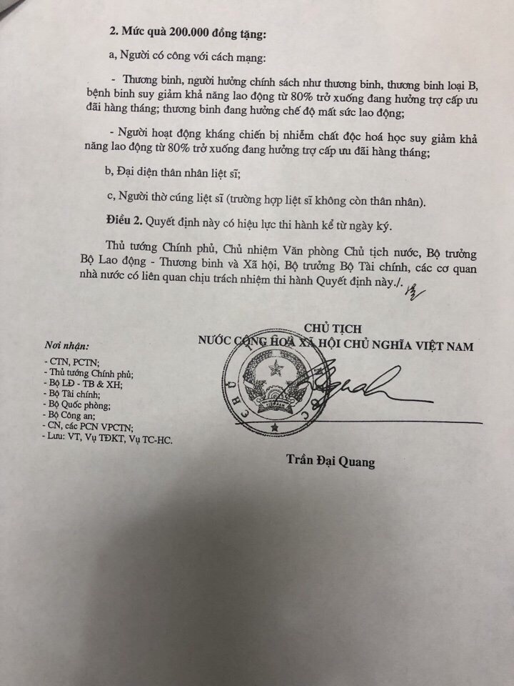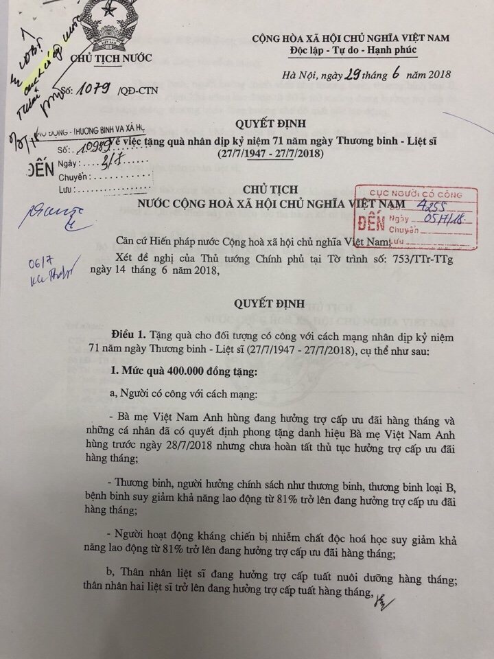 V/v hướng dẫn tặng quà của Chủ tịch nước nhân dịp kỷ niệm 71 năm ngày Thương binh - Liệt sĩ (27/7/1947-27/7/2018)