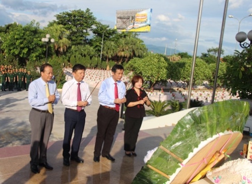 Theo đó, các đồng chí lãnh đạo tỉnh, đoàn đại biểu lực lượng vũ trang tỉnh đã lên lễ đài đặt vòng hoa, dâng hương và thành kính viếng các Anh hùng liệt sỹ đã anh dũng chiến đấu, hy sinh vì sự nghiệp giải phóng dân tộc, bảo vệ Tổ quốc và làm nghĩa vụ quốc tế, đồng thời các đồng chí lãnh đạo tỉnh, các đại biểu, đoàn viên thanh niên và toàn thể cán bộ, nhân dân có mặt đã kính cẩn dâng hương lên từng phần mộ với gần 3.000 mộ các Anh hùng liệt sỹ từ mọi miền Tổ quốc đang an nghỉ tại nơi đây.