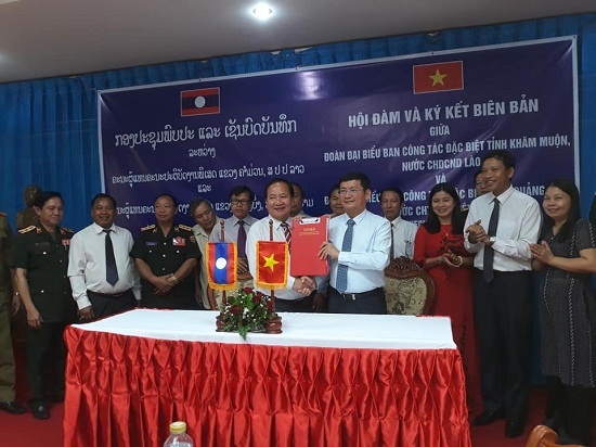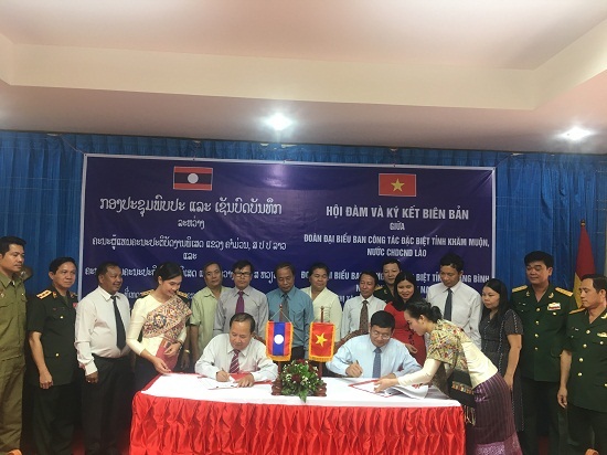 Ngày 5/9/2018 vừa qua, tại thị xã Thà Khẹc, tỉnh Khăm Muộn (nước CHDCND Lào) Ban công tác đặc biệt tỉnh Quảng Bình và Ban công tác đặc biệt tỉnh Khăm Muộn đã tổ chức buổi Hội đàm và ký kết Biên bản phối hợp công tác tìm kiếm, quy tập hài cốt liệt sĩ- quân tình nguyện, chuyên gia Việt Nam hy sinh tại chiến trường Lào về nước trong mùa khô 2018-2019.
