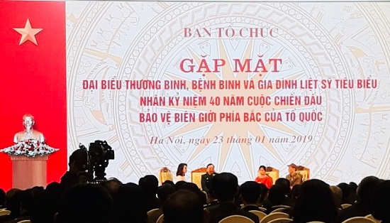 Chiều ngày 23/1/2019 vừa qua, tại Hà Nội, Bộ Lao động-Thương binh và Xã hội phối hợp với Trung ương Mặt trận TQ Việt Nam, Bộ Quốc phòng, Bộ Công an, Báo Nhân dân, Trung ương Hội Cựu chiến binh Việt Nam và UBND Thành phố Hà Nội tổ chức gặp mặt gần 240 đại biểu là thương binh, bệnh binh và gia đình liệt sĩ tiêu biểu nhân kỷ niệm 40 năm cuộc chiến đấu bảo vệ biên giới phía Bắc của Tổ quốc.