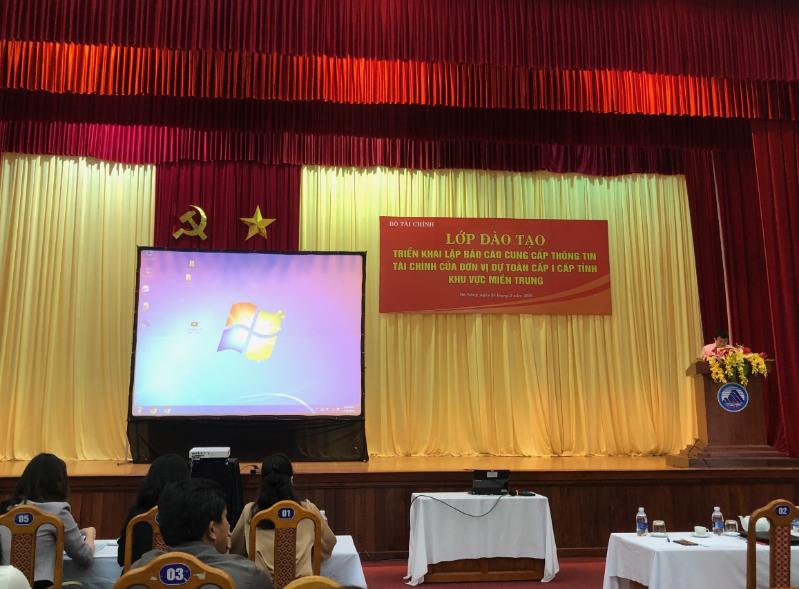 Triển khai Luật Kế toán 2015, Nghị định số 25/2017/NĐ-CP ngày 14/3/2017 của Chính phủ về báo cáo tài chính nhà nước;Thông tư số 99/2018/TT-BTC ngày 01/11/2018 của Bộ Tài chính hướng dẫn lập báo cáo tài chính tổng hợp của đơn vị kế toán nhà nước là đơn vị kế toán cấp trên; Thông tư số 133/2018/TT-BTC ngày 28/12/2018 của Bộ Tài chính hướng dẫn lập báo cáo tài chính nhà nước; Bộ Tài chính tổ chức lớp đào tạo hướng dẫn lập báo cáo cung cấp thông tin tài chính cho đơn vị dự toán cấp 1 thuộc ngân sách cấp tỉnh khu vực miền Trung tại Trường Chính trị Thành phố Đà Nẵng, vào ngày 26/3/2019. Cán bộ liên quan đến công tác lập Báo cáo tài chính Nhà nước của 17 tỉnh, thành phố đã được nghe các Giảng viên, Báo cáo viên của  Bộ Tài chính hướng dẫn lập Báo cáo tài chính tổng hợp của đơn vị kế toán nhà nước là đơn vị kế toán cấp trên; hướng dẫn lập báo cáo tài chính nhà nước