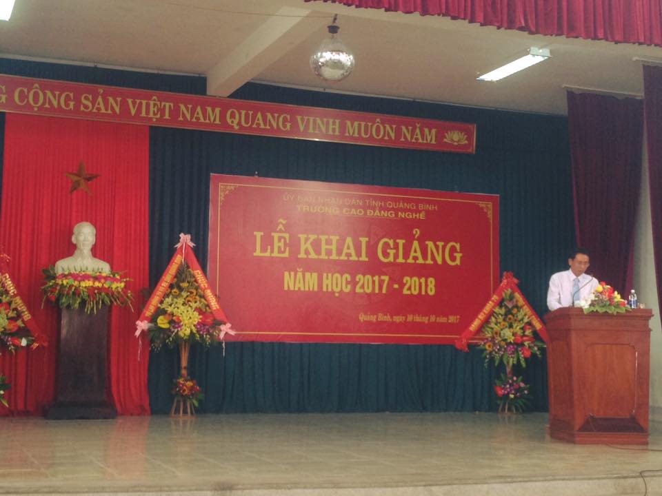 Sáng ngày 10/10/2017, Trường Cao đẳng nghề Quảng Bình tổ chức lễ khai giảng năm học 2017– 2018. Đến dự lễ khai giảng có đồng chí Phạm Thành Đồng – Phó Giám đốc Sở Lao động – Thương binh và Xã hội cùng đại diện một số sở, ban, ngành cấp tỉnh và trung tâm GD DN trên địa bàn.