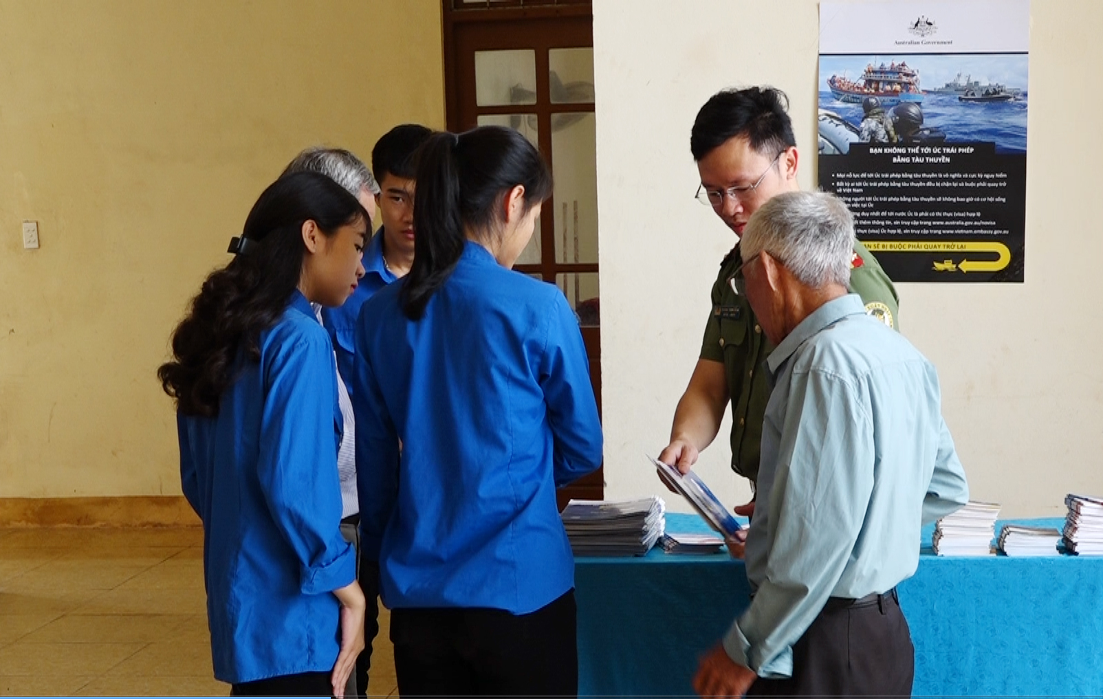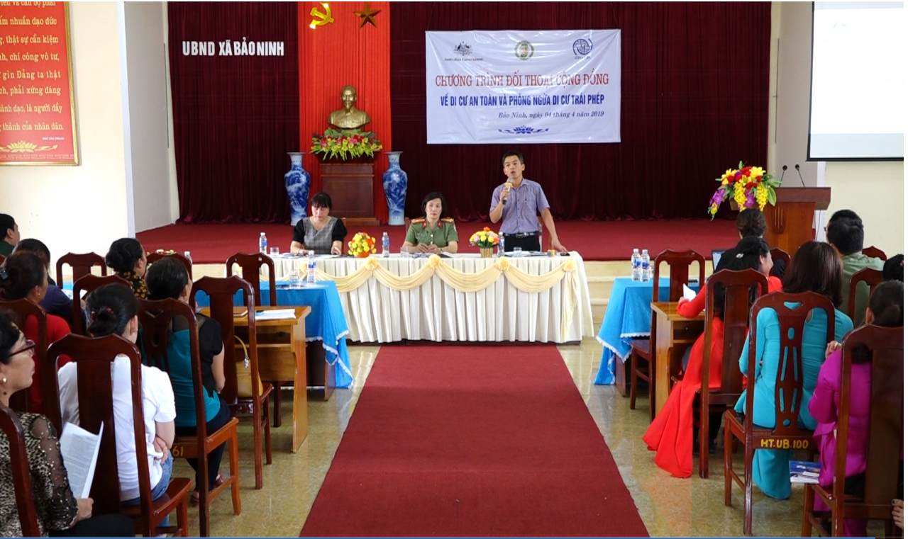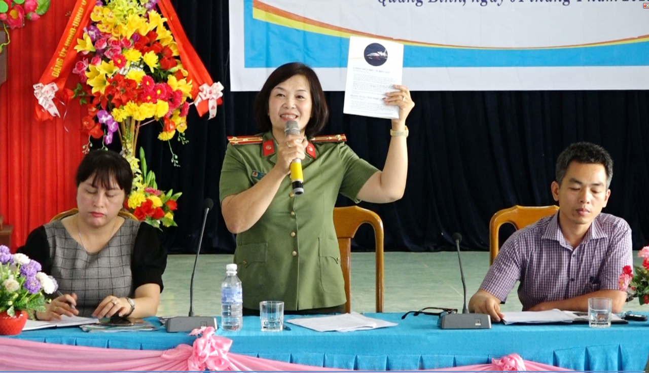 Ngày 4/4/2019, Cục Quản lý Xuất nhập cảnh Bộ Công an, Phòng Quản lý Xuất nhập cảnh Công an tỉnh Quảng Bình, Tổ chức Di cư quốc tế IOM tại Việt Nam và UBND 2 xã Bảo Ninh và Quang Phú phối hợp tổ chức hội nghị đối thoại chính sách về di cư an toàn và phòng ngừa di cư trái phépThượng tá Trần Thị Thủy, PTP.Phòng quản lý XNC Công an tỉnh Quảng Bình hướng dẫn cho bà con những thủ tục và điều kiện làm hộ chiếu xuất cảnhThượng tá Trần Thị Thủy, PTP.Phòng quản lý XNC Công an tỉnh Quảng Bình hướng dẫn cho bà con những thủ tục và điều kiện làm hộ chiếu xuất cảnh