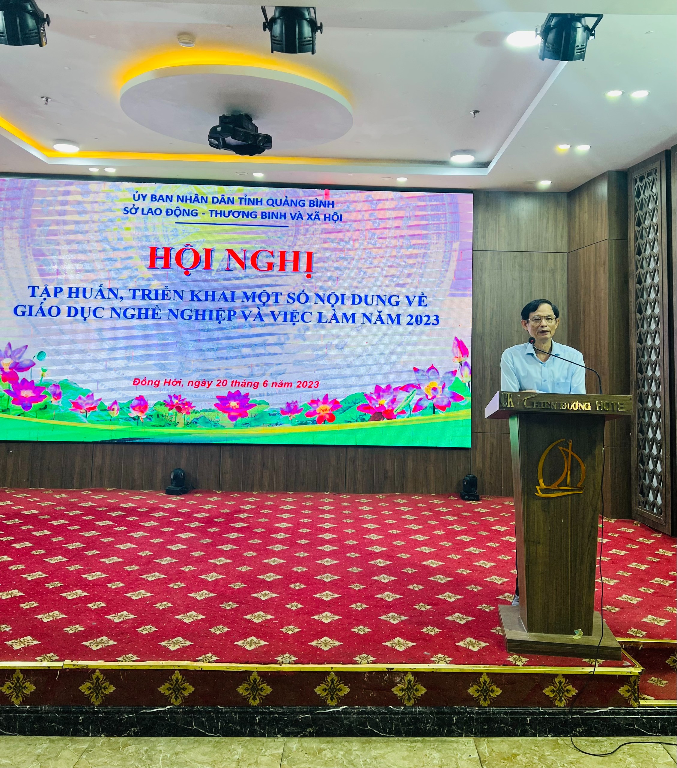 Tại Hội nghị, đại diện lãnh đạo Phòng Lao động – Việc làm và Dạy nghề, Trung tâm Dịch vụ việc làm Quảng Bình đã hướng dẫn triển khai thực một số văn bản mới, các chính sách về Giáo dục nghề nghiệp và Việc làm; hướng dẫn triển khai thực hiện 3 Chương trình mục tiêu quốc gia; hướng dẫn việc  thu thập, phân tích, dự báo thị trường lao động năm 2023.