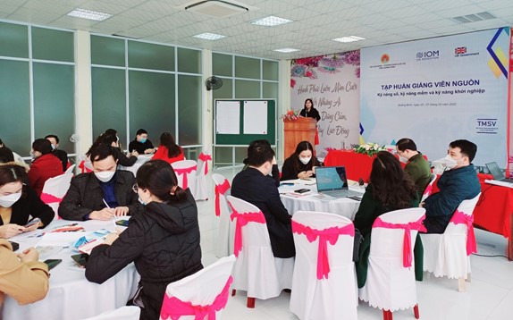 Ngày 25/2/2022, Sở Lao động – Thương binh và Xã hội tỉnh Quảng Bình phối hợp với Tổ chức Di cư Quốc tế (IOM) tại Việt Nam tổ chức tổ chức tập huấn giảng viên nguồn cho cán bộ, giảng viên, giáo viên các cơ quan, đơn vị; các cơ sở giáo dục nghề nghiệp, trung tâm dịch vụ việc làm về kỹ năng số, kỹ năng mềm, kỹ năng khởi nghiệp, hướng tới kết quả mong đợi là tăng cường khả năng tiếp cận các cơ hội học nghề, việc làm và sinh kế cho người có mong muốn di cư và người di cư trong hoàn cảnh dễ bị tổn thương và nạn nhân mua bán người. Đây là nội dung hợp phần thuộc Dự án “Đấu tranh chống mua bán người và nô lệ thời hiện đại: Tăng cường truyền thông thay đổi hành vi và các dịch vụ hỗ trợ nạn nhân”.