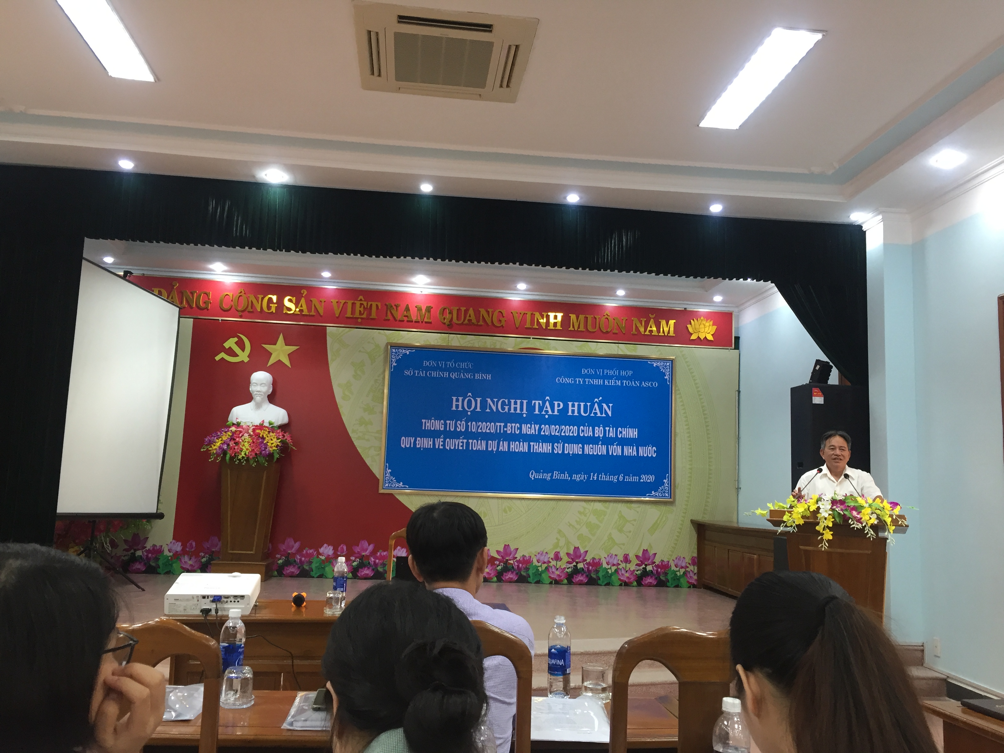 Ngày 14/6/2020, Sở Tài chính tỉnh Quảng Bình đã phối hợp với Công ty TNHH Kiểm toán ASCO tổ chức Hội nghị tập huấn Thông tư số 10/2020/TT-BTC ngày 20/02/2020 của Bộ Tài chính về quyết toán dự án hoàn thành sử dụng nguồn vốn Nhà nước.