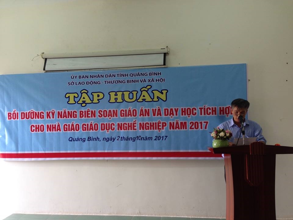 Thực hiện Kế hoạch số 1273/KH-SLĐTBXH ngày 18/9/2017 của Sở Lao động - Thương binh và Xã hội Quảng Bình, từ ngày 25/9 đến 07/12/2017, tại trường Cao đẳng nghề Quảng Bình và trung tâm Dạy nghề Hội Liên hiệp Phụ nữ tỉnh, Sở Lao động - Thương binh và Xã hội đã phối hợp với trường Đại học Sư phạm Kỹ thuật Nam Định và trường Cao đẳng Du lịch Huế tổ chức các lớp bồi dưỡng nhà giáo, cán bộ quản lý giáo dục nghề nghiệp của các cơ sở giáo dục nghề nghiệp và cơ sở hoạt động giáo dục nghề nghiệp trên địa bàn tỉnh.