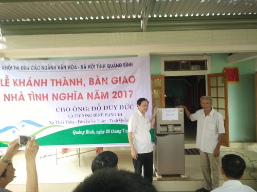 Tại buổi bàn giao nhà tình nghĩa, Khối thi đua các ngành Văn hóa - Xã hội còn tặng cho ông Đỗ Duy Đức 01 tủ lạnh trị giá 06 triệu đồng. Đây là hoạt động có ý nghĩa nhân dịp Kỷ niệm 70 năm Ngày Thương binh - Liệt sỹ (27/7/1947 - 27/7/2017); thể hiện đạo lý Uống nước nhớ nguồn, Đền ơn đáp nghĩa đối vi các thương binh, lit s và người có công vi cách mng.
